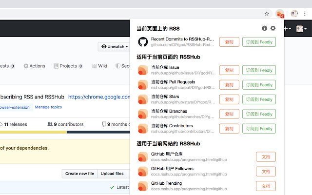 - 快速发现和订阅当前页面支持的 RSSHub