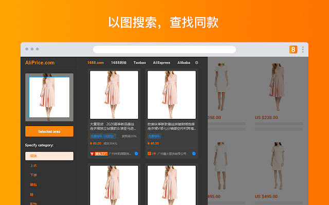 AliPrice图片搜索,以图搜图找货神器是一个方便您在TB、AE、拼多多、义乌购、虾皮、京东、Ebay上采购货源的拓展工具。