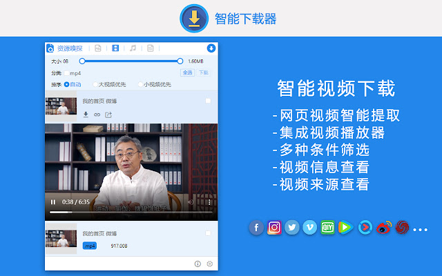 ●支持腾讯视频、爱奇艺、优酷、微博、哔哩哔哩、bilibili、B站、A站、Facebook、Twitter、Instagram