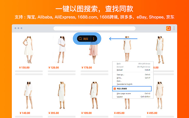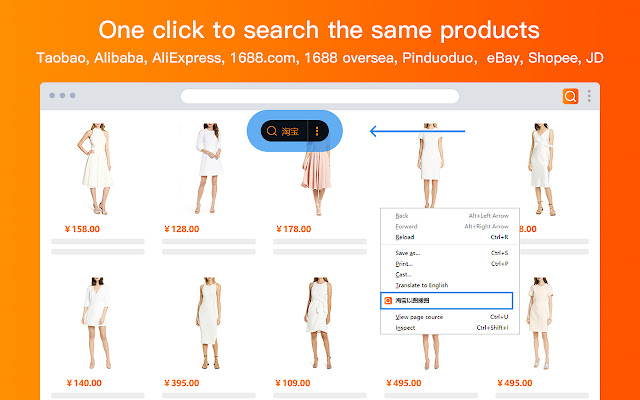 图片搜索:点击搜图按钮或者右键图片搜索,在TB、AE、拼多多、义乌购、虾皮、eBay和京东等中国电商网站上快速找到同款产品,高效找货,方便比价,无论是买家还是卖家都可以用它来挑选好物,节省时间。