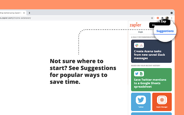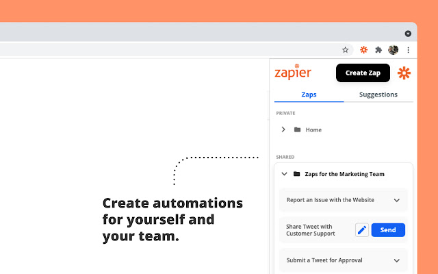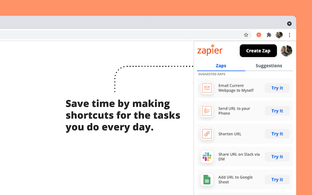3. 单击 Zapier Chrome 扩展程序,然后单击“创建 Zap”以构建将自动执行您想要的任务的 Zap