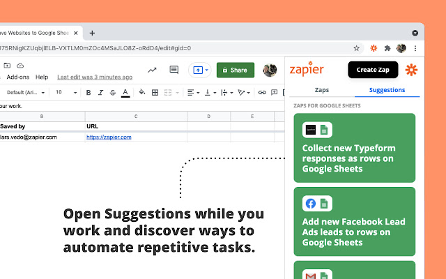 您可以将网页添加到 Google 表格、将任务添加到您的待办事项列表、与您的团队共享文章、自动回复新的潜在客户等等,无需手动工作或编码。