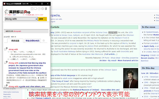 以下功能可以在“Eijiro on the WEB”扩展中使用。