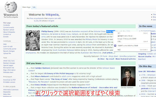 ■ 双击搜索/选择搜索 如果您勾选“双击/启用选择搜索”并开启(默认设置:关闭),您可以在网站上的文本中双击一个词,或者,您可以搜索只需通过选择和指定范围来获取短语。
