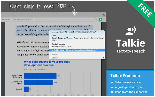 您也可以选择文本,然后右键单击它,然后在菜单中选择对讲机。这种方式也适用于 PDF 文件和 Chrome 中的一些特殊类型的页面。