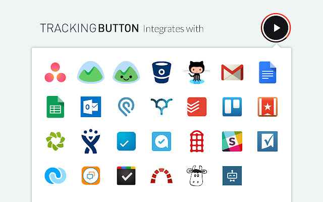 TrackingTime 按钮允许您将时间跟踪添加到超过 35 种流行的生产力工具和在线服务中。它无缝集成到您每天喜爱和使用的业务应用程序的 UI 中。