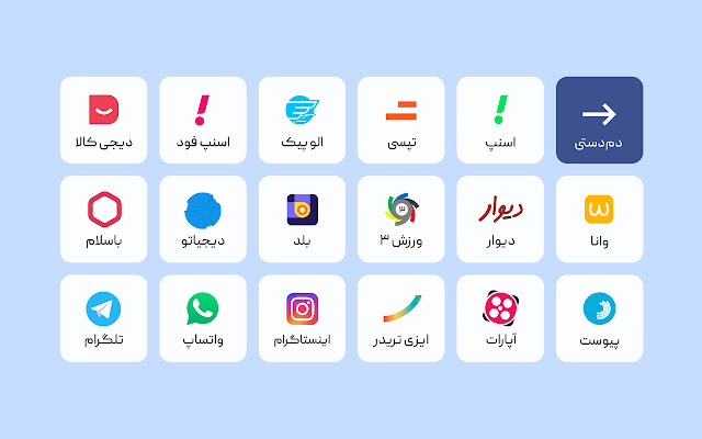 Snap - Tap C - Tepsi - Elopic - Snap Food - Digitala - Digikala - Wana Studio - Wall - Sports Three - Balad - Digitato - Hello - 附件 - 设备 - Easy Trader - Instagram - WhatsApp - Telegram
