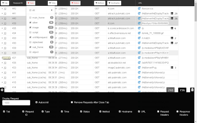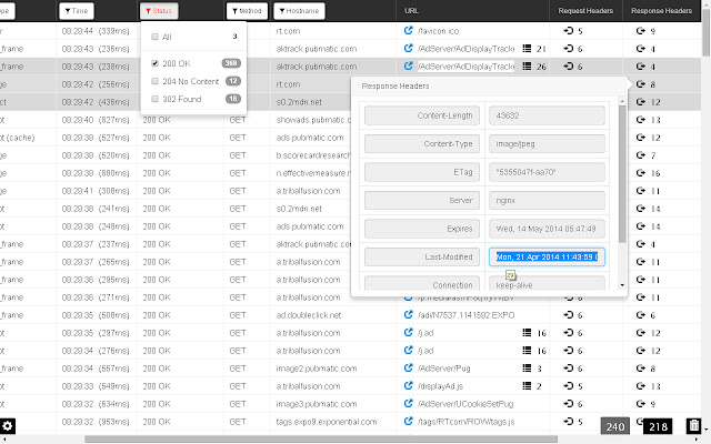 对于每个 HTTP 请求,会显示以下信息(可以隐藏):