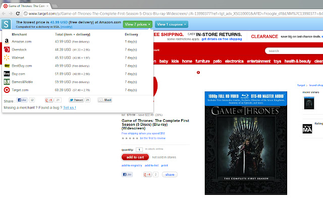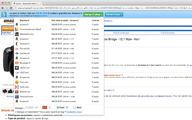 Shoptimate 是 Chrome 的自动价格比较工具。它在产品详细信息页面上显示其他零售商的产品价格。