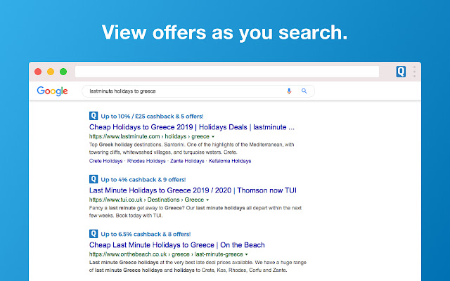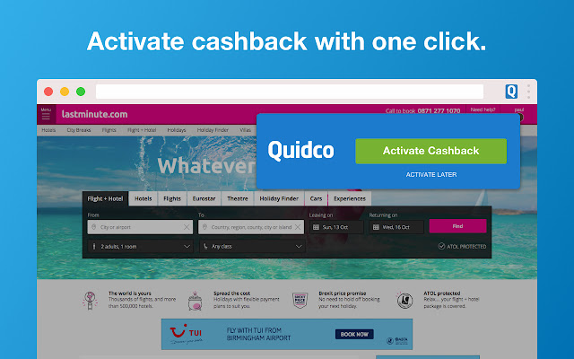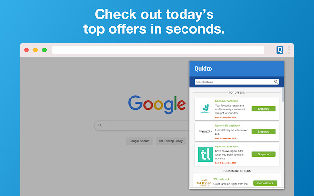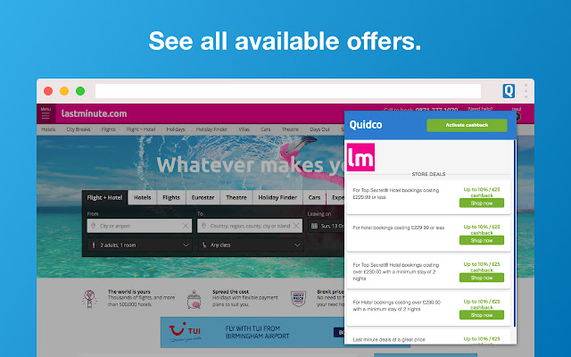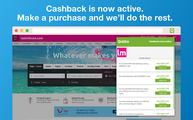 Quidco 扩展提醒您在浏览您最喜欢的在线零售商时可以获得的现金返还。