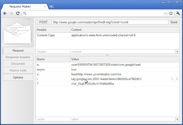 Request Maker 是一个渗透测试工具。有了它,您可以轻松捕获网页发出的请求,篡改 URL、标题和 POST 数据,当然还可以发出新请求。 Request Maker 只捕获通过 HTML 表单和 XMLHttpRequests 发送的请求;它不会用有关图像和样式表的无用信息填充日志。日志是特定于选项卡的,显示在页面操作弹出窗口中,并且请求可以添加书签。发送请求后,您可以像在任何其他页面上一样单击书签按钮。