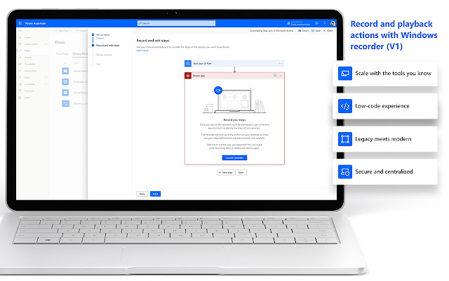 Microsoft Windows 记录器(V1)使您能够创建桌面流,以跨本地应用、Web 应用和服务自动执行手动业务流程。