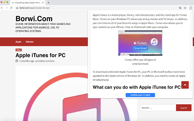 此扩展程序为您提供有关 iTunes 的详细信息,并使您可以轻松地在您的 PC 上安装和使用 iTunes。