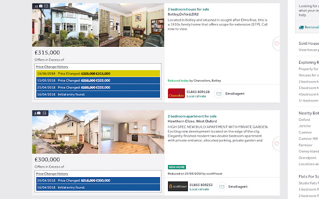 查看 Rightmove 上列出的房产的价格变化。