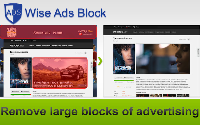 WAB - 是一个明智的添加阻塞。 WAB 可以阻止多种类型的烦人广告,例如在您在各种热门网站(ex.ua、megogo.net、youtube.com、kinogo.co)上观看时打断电影的广告。