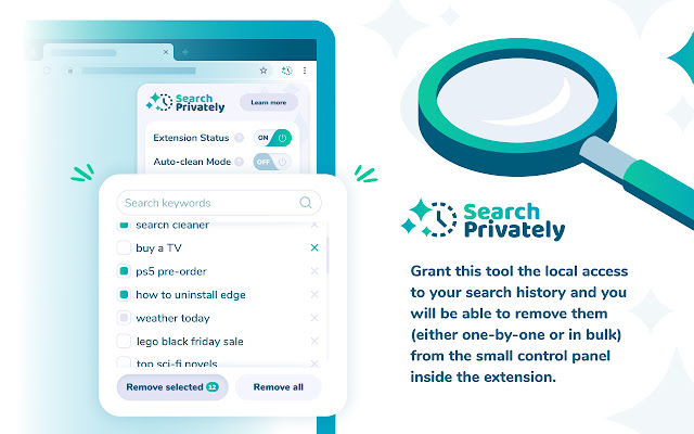 打开自动清理模式后,我们的工具将自动删除您浏览的所有术语。当它关闭时,您可以通过查看您浏览的项目列表并删除您想要的任何项目来手动完成这项工作。