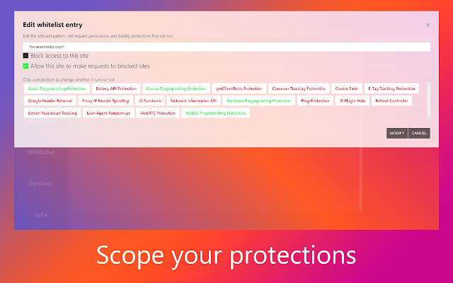 一种扩展,用于阻止整个网络上的网站采用的多种高级跟踪技术。