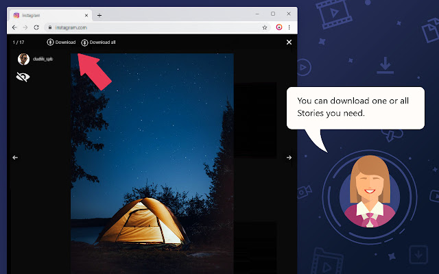 - 只需单击一下,即可将 IGTV 和 Stories 下载到您的计算机。想要将您喜欢的 IGTV 或 Story 保存到您的 PC 上吗?现在它是小菜一碟。单击按钮,它就完成了。