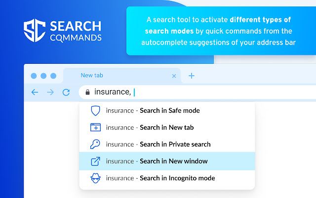 当您在线查找不同类型的信息时,您可能需要不同类型的工具,例如打开安全搜索过滤器以防止您接触成人内容、打开隐身模式、选择私人搜索引擎以保护您的隐私和个人详细信息,或打开新标签页或新窗口。我们的扩展允许您使用地址栏中的快速命令,从而为您提供一种更简单、更快捷的方式来访问这些特殊的搜索工具。
