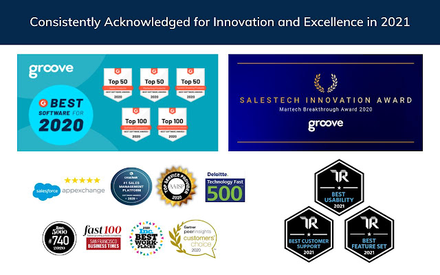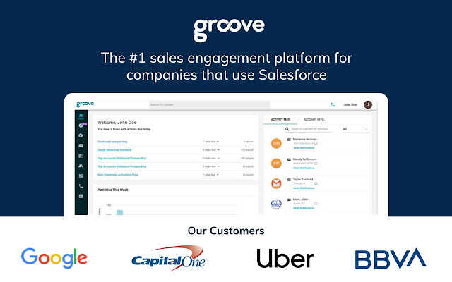 超过 70,000 名客户经理、销售开发和客户成功代表在世界上一些最大和发展最快的公司中使用 Groove,包括谷歌、优步、BBVA 和 Capital One。 Groove 在 G2 的销售参与类别中连续两年获得最高客户满意度评级。