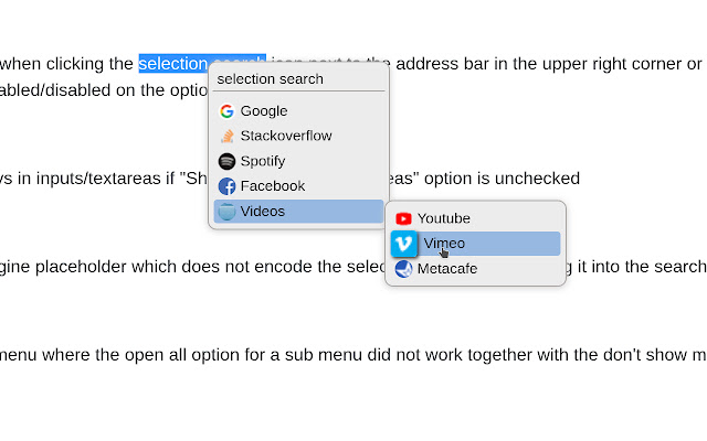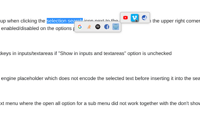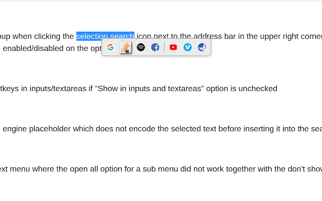 使用此扩展程序,您可以轻松搜索您选择的文本。选择某些文本后,您可以左键单击选定的文本以获取弹出窗口,您可以在其中选择要搜索的搜索引擎。