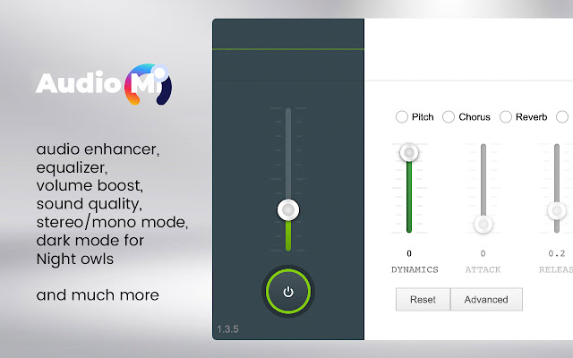 Audio Mi 是一款易于使用的 chrome 浏览器音频控制工具。已经进行了十多次调整来调整电影、游戏、视频、歌曲和任何其他产生声音的东西的音调。功能强大且易于使用的经典声音均衡器,具有音乐流派 pset 和低音增强功能。