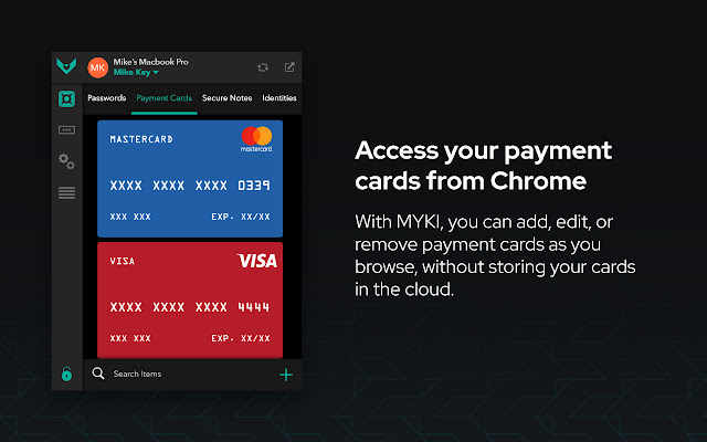 凭借 MYKI 独特的去中心化数据存储,您并且只有您拥有自己的数字身份。您的密码和其他敏感信息会留在您的所有设备上。此外,MYKI 不要求您记住主密码。您可以使用 Android 的生物特征认证、iOS 和 MacOS 上的 Touch ID 以及 Windows 上的 Windows Hello 使用生物特征认证来解锁您的 MYKI 保险库。