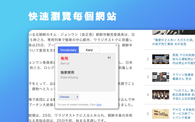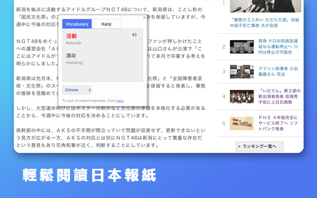 只需单击一下,您就可以快速将日语翻译成您的语言。