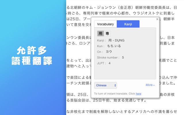 使用Mazii,阅读日文报纸和电子邮件变得前所未有的轻松。除了您的语言,Mazii还为用户提供其他语言翻译,允许用户比较意义以准确地获得意义。