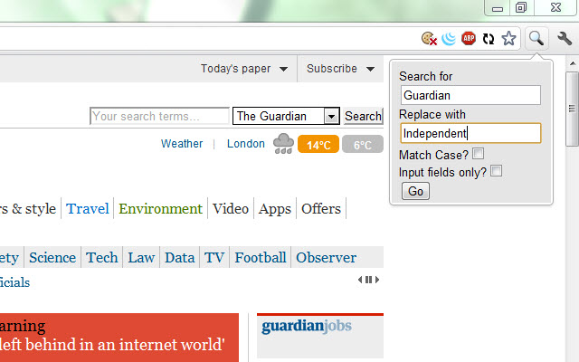 此扩展程序允许您在页面上的任何位置搜索文本并将其替换为不同的文本。搜索可以考虑大小写并且可以仅限于输入字段。它可用于快速更正多次输入错误信息的表单