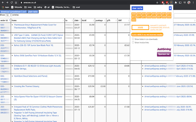 此扩展程序从您的亚马逊账户中提取订单历史记录。