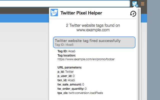 Twitter Pixel Helper 是一款 Chrome 扩展程序,可帮助广告商验证其 Twitter 网站标签实施情况。