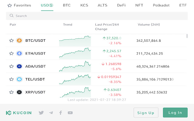 BTC、ETH、DOGE 价格和趋势现在可以在您的浏览器工具栏上使用,使用来自世界顶级加密货币交易所 KuCoin 的最准确数据。您可以简单地转到浏览器工具栏并查看 KuCoin 每分钟更新的加密货币价格。多达1000个交易对供您选择,包括USD、BTC、KCS、ALTS、NFT等。