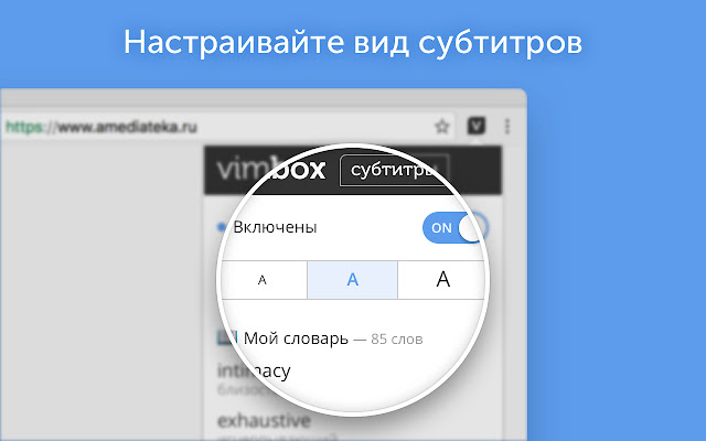 你想学英文吗?我们已经为您找到了解决方案! Vimbox 字幕是嵌入在您最喜爱的在线影院(如 Netflix 和 Amazon Prime)中的智能字幕。 Vimbox 字幕扩展使您能够将字幕中的英语单词翻译成俄语并将它们添加到您的个人词典中。