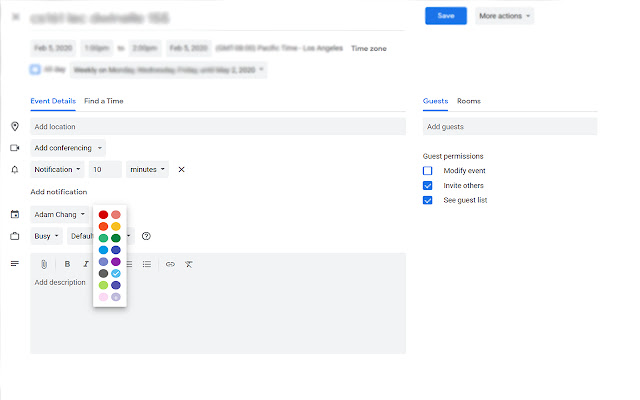 向 Google 日历的颜色选择菜单添加更多颜色(右键单击)。
