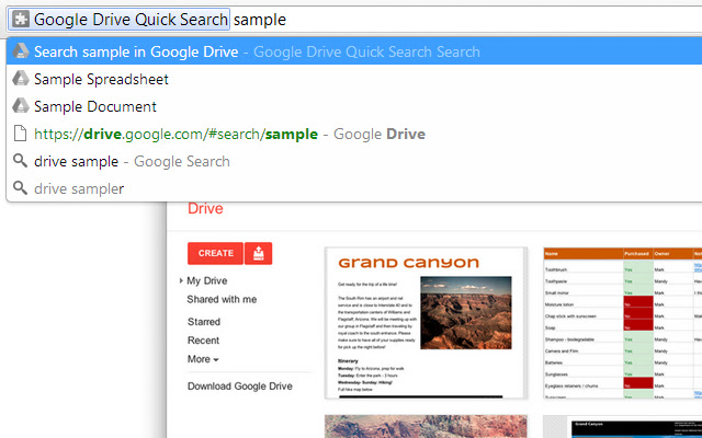 这将列出匹配的条目。您还可以使用此扩展程序转到云端硬盘的搜索页面。