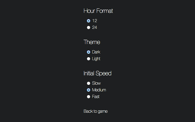 您可以更改初始速度、颜色(亮或暗)和时间显示。