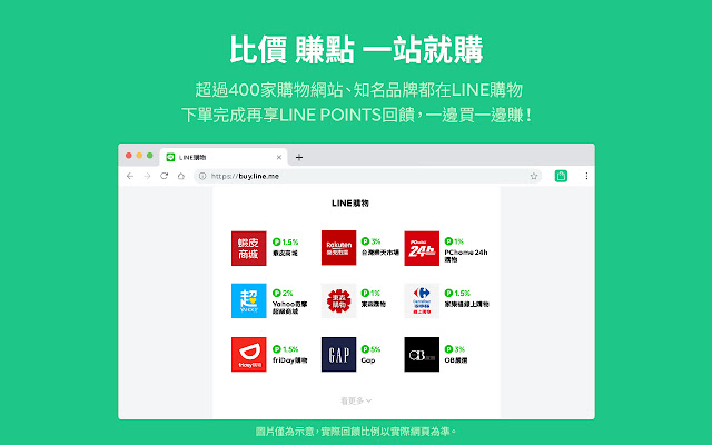 ★ 赚点有购多透过LINE购物前往您喜欢的购物网站消费,除了享有各大网站的优惠、购物金或点数外,还可以额外获得LINE POINTS回馈!