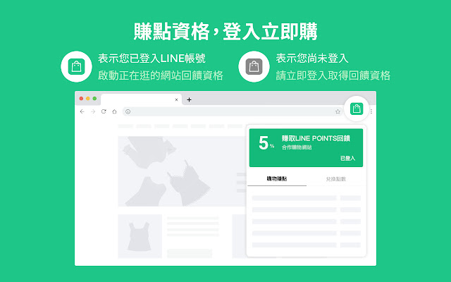 3. 赚点资格提醒:提醒您登入,启动正在逛的网站LINE POINTS回馈资格。