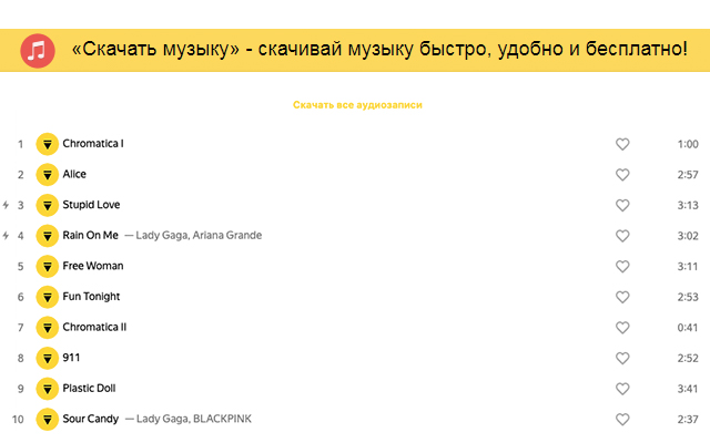 安装扩展程序后,您始终可以在不访问 Internet 的情况下听音乐。只需单击“下载”按钮,所有音乐都可以在您的个人计算机上离线使用。所有文件都以 mp3 格式保存,并带有正确的曲目名称、元数据和封面。
