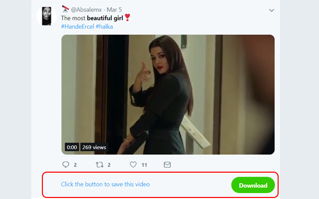 1) 安装后您将在每条推文下方看到一个“下载”按钮,其中包含一个视频。