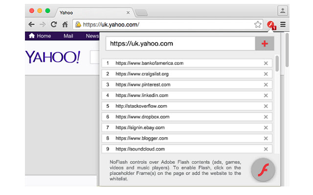 Flash Block (Plus) 扩展控制网页中的所有 Adobe Flash 内容(包括广告、游戏、视频和音乐播放器)。在您浏览时,会出现一个说明“Flash 内容”的占位符框架,而不是实际的 Flash。单击框架会加载原始内容。此外,您可以从工具栏弹出窗口将任何网站列入白名单以禁用扩展程序。