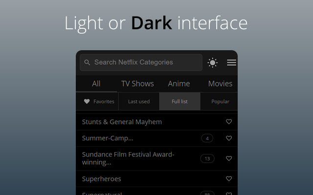 这个扩展解锁了一个隐藏的主要类别列表,远远超出了通常的动作、喜剧、戏剧、科幻等。类别和流派分为数千个子流派,以帮助将正确的内容与正确的情绪相匹配。
