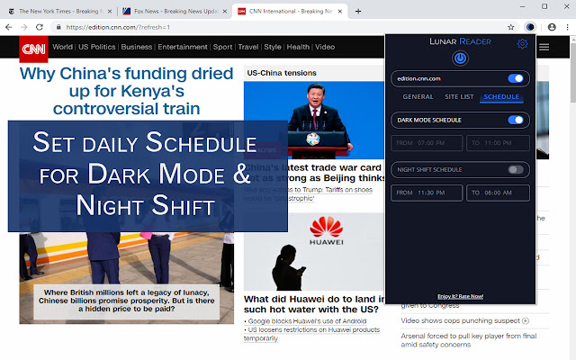 Lunar Dark Reader 扩展将在所有网站上放置深色主题,适用于夜间工作和在线新闻或书籍阅读的深色阅读器。
