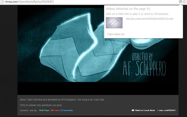 每当扩展程序检测到页面上正在播放受支持的视频文件时,它都会向您的 omibox 添加页面操作,从而允许在 Chrome Cast 设备上播放视频。