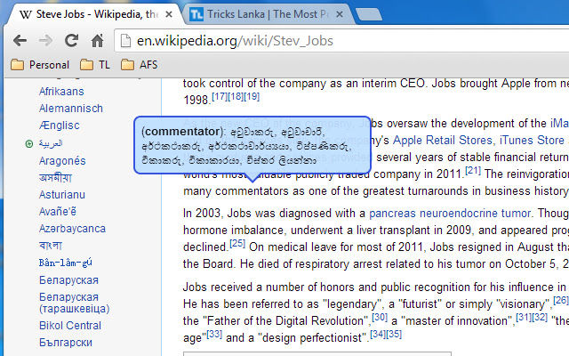 “僧伽罗语含义”扩展提供了在浏览网页时遇到的任何英语单词的僧伽罗语含义。如果安装了僧伽罗语扩展的用户发现任何难懂的英语单词,用户只需将鼠标拖到该特定单词上,然后它将显示该特定英语单词的正确僧伽罗语含义。这将帮助读者更好地了解实际的网络内容,并帮助用户提高他们的英语语言。