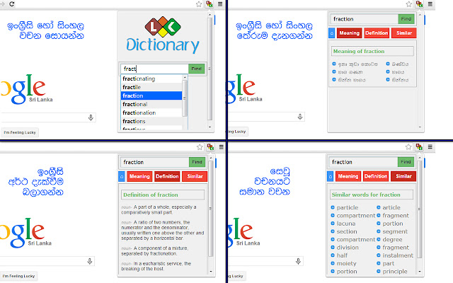 除此之外,我们现在已经将 LK Dictionary 与 LKTips 集成在一起。现在,您可以搜索并找到任何英语或僧伽罗语单词的含义以及所搜索单词的英语定义和其他类似单词。