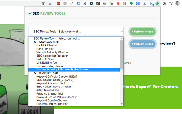 Chrome 的 SEO Review Tools 是一个免费的扩展程序,它允许您使用我的 52 个免费 SEO 工具之一快速检查您访问的 URL。此外,我还添加了我最喜欢的 7 个 Google 工具。