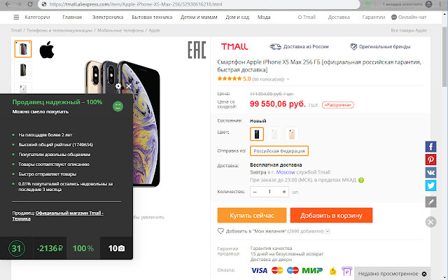 ★ 检查卖家的评级 - 扩展将显示有关卖家可靠性的最重要的细节,并提供有关信任程度的总体结论。