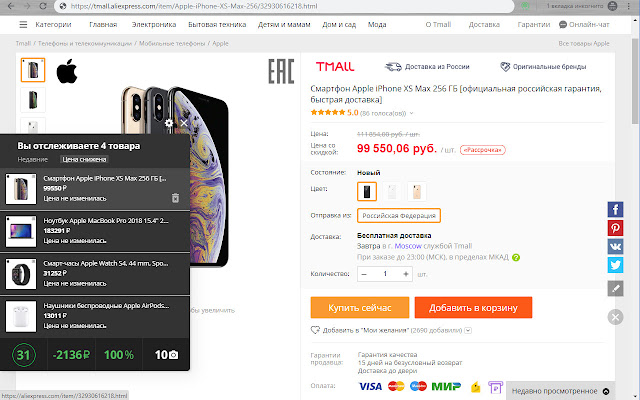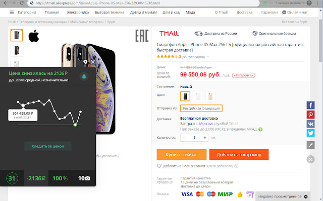 阿里上很多卖家为了增加购买量,经常进行虚假促销。也就是说,产品的价格很快上涨,然后下降,以折扣吸引买家。由于扩展,您可以定期查看价格动态。此外,扩展的一个关键优势是详细的统计数据,可用于验证卖家的可靠性和诚实度。我们的扩展程序还有第三个优势,即当添加到收藏夹的项目成本降低时收到特殊通知。